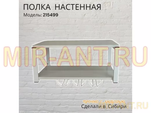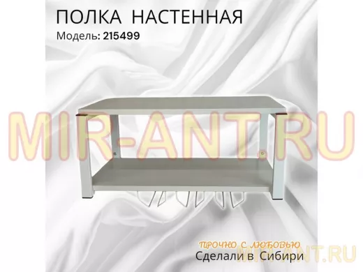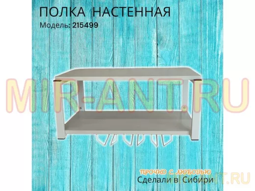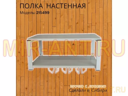 Полка c тремя бокалодержателями для микроволновки "SVCH 215499" 60х30см, белая, сосна выбеленная - MIR-ANT.RU