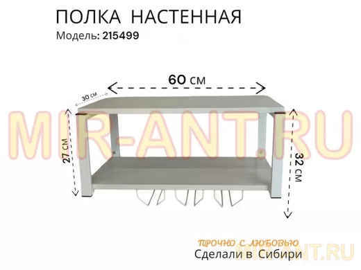 • Каркас изделия выполнен из высокопрочного металлического профиля. Полка изготовлена из ЛДСП