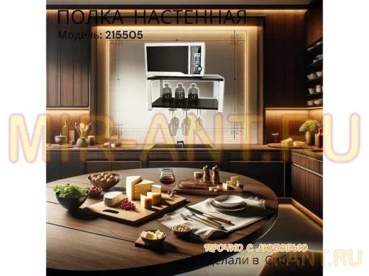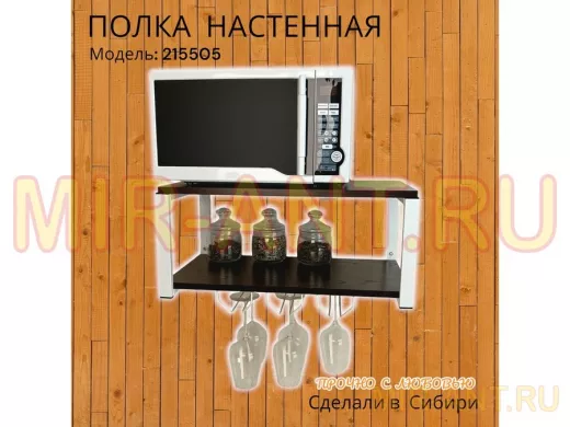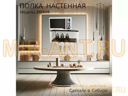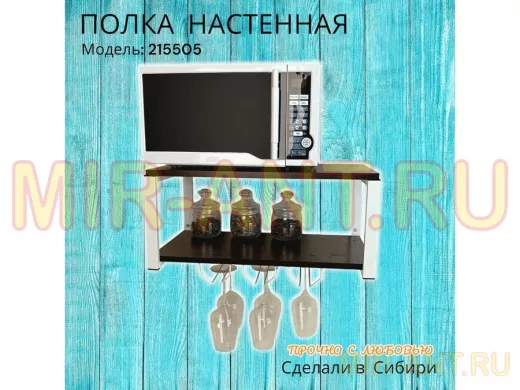 • Полка надежно крепится к стене при помощи анкеров или шурупов с дюбелями, на ней можно разместить микроволновую печь, кухонную технику, посуду, специи
