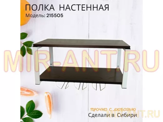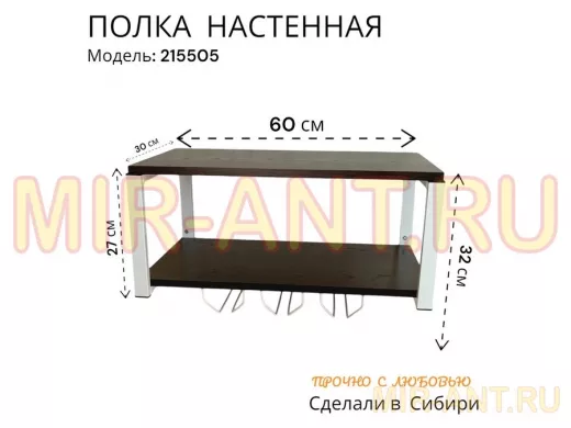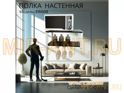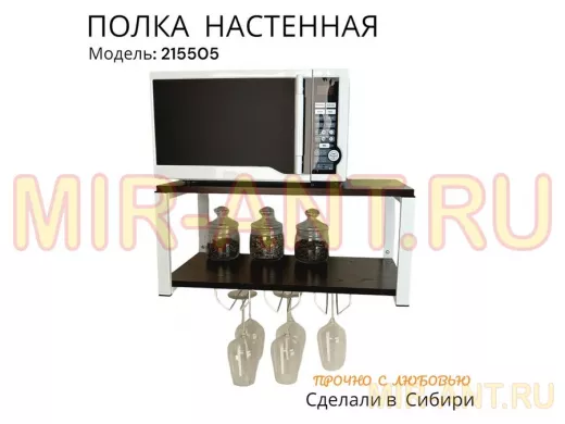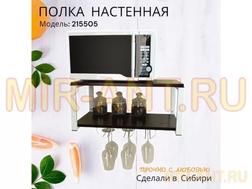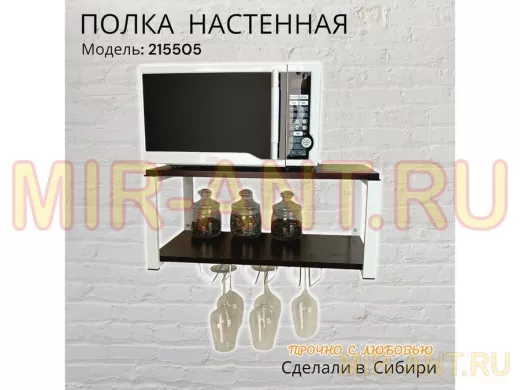 Полка c тремя бокалодержателями для микроволновки "SVCH 215505" 60х30см, белая, венге - MIR-ANT.RU