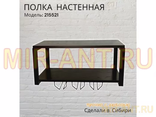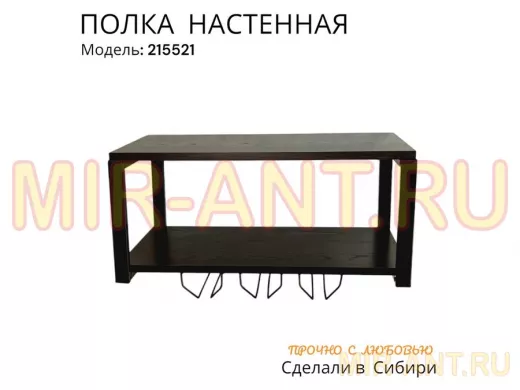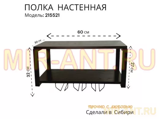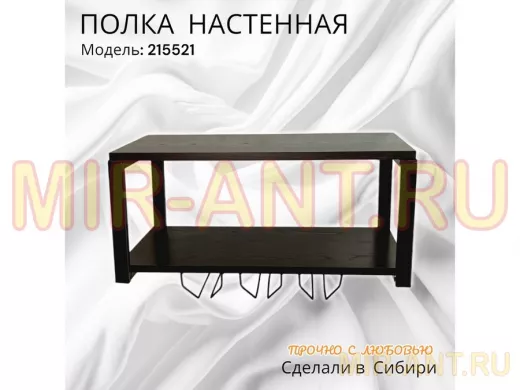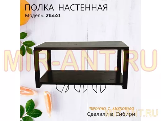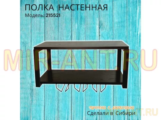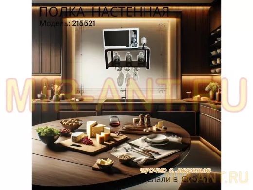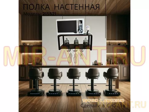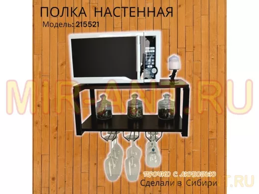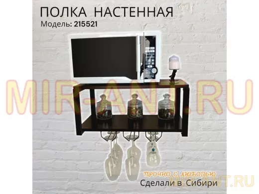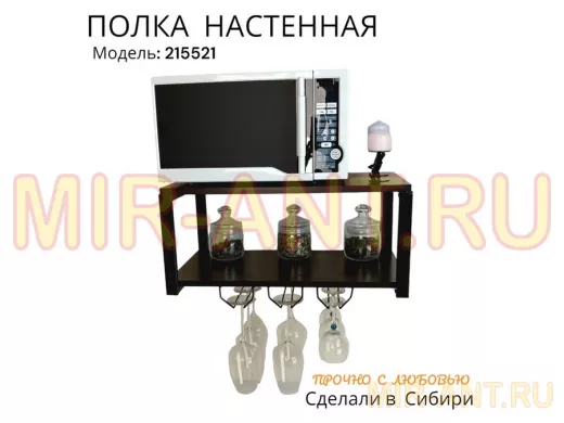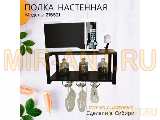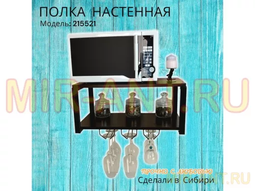 Полка c тремя бокалодержателями для микроволновки "SVCH 215521" 60х30см, черная, венге - MIR-ANT.RU