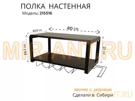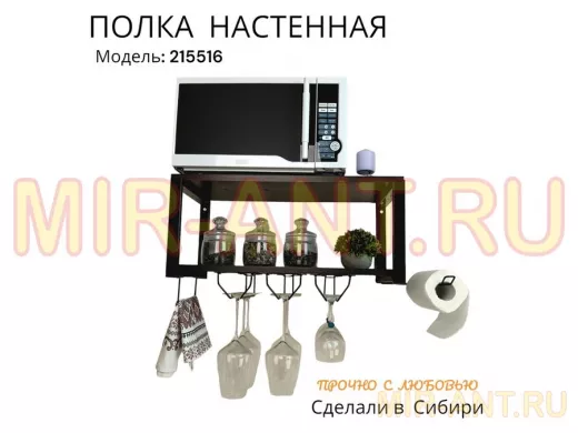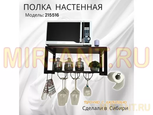 Полка c тремя бокалодержателем и полотенцед. для микроволновки "SVCH 215516" 60х30см, черная, венге - MIR-ANT.RU
