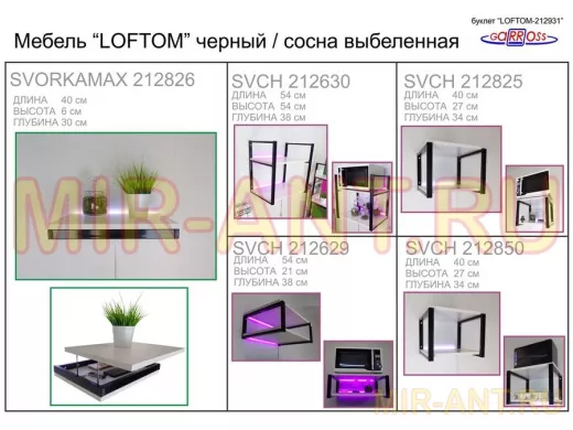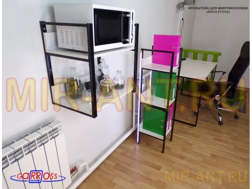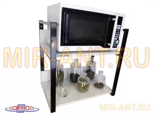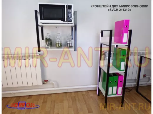 Кронштейн для микроволновки, 54см чёрный "SVCH 211312" две полки 35х54см с бортиком,сосна выбеленная - MIR-ANT.RU