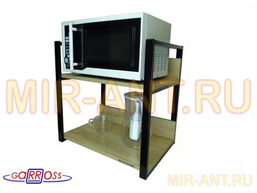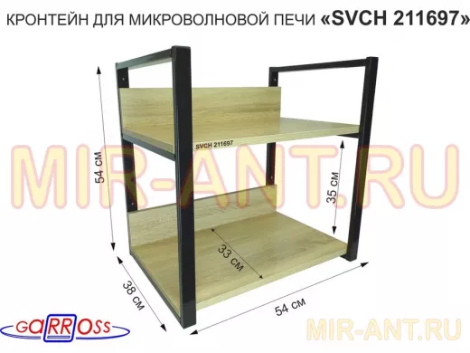Кронштейн для микроволновки, 54см чёрный "LAMAGIA 211697" две полки 35х54см с бортиками, дуб - MIR-ANT.RU