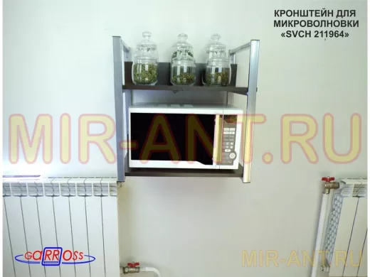 Кронштейн для микроволновки, 54см серебристый "SVCH 211964" две полки 35х54см со стенками, венге - MIR-ANT.RU
