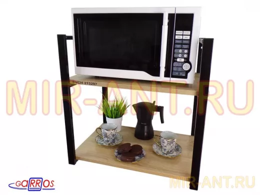 Кронштейн для микроволновки, высота 54 см, черный "SVCH 213297" две полки 35х60 см, дуб - MIR-ANT.RU
