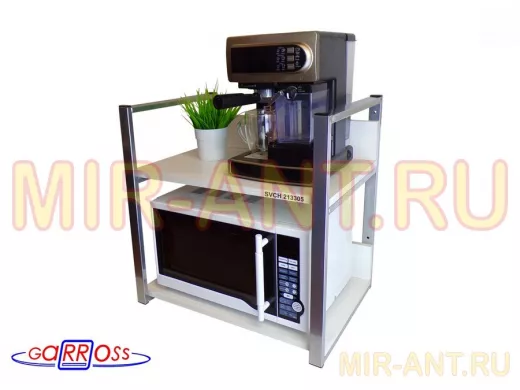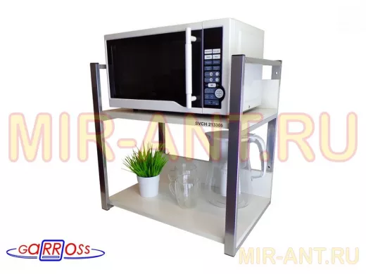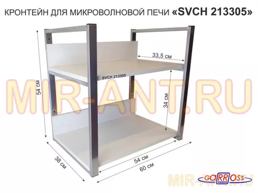 Кронштейн для микроволновки, высота, 54см серебр "SVCH 213305" две полки 35х60см со стенками, сосна - MIR-ANT.RU
