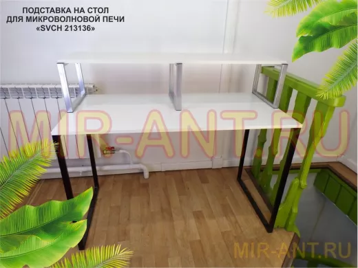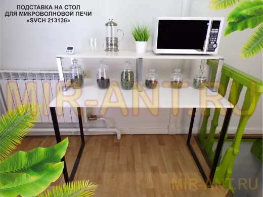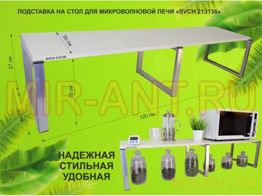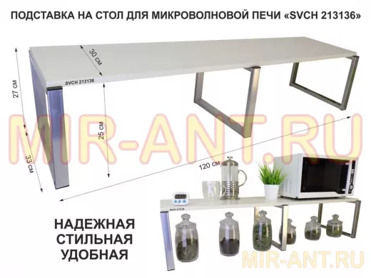 Подставка на стол для микроволновой печи, высота 27см, серебр "SVCH 213136" полка 120х30см, сосна - MIR-ANT.RU