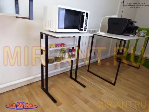 Столик для микровоновой печи позволяет эффективно использовать место на кухне. Важно отметить, что столик занимает немного пространства, поэтому ему найдётся место даже в самой малогабаритной квартире или офисе. Столик, в стиле Лофт, может быть использован в качестве подставки для цветов и книг, места для работы, места для хранения мелочей, в спальню для завтра, как обеденный стол для перекуса, для офиса и отдыха на даче. Для кабинета/спальни/гостиной. Стол универсален и будет отлично смотреться и в интерьере уютного дома, и в интерьере делового офиса, и в салоне красоты. Столик, без труда, можно перенести в любое место.
