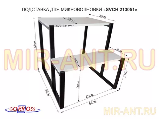 Подставка для микроволновки, черный, 55см "SVCH 213051" с двумя уровнями 55 и 31 см,сосна выбеленная - MIR-ANT.RU