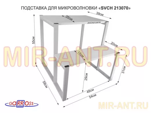 Подставка для микроволновки, серый, 55см "SVCH 213070" с двумя уровнями 55 и 31 см,сосна выбеленная - MIR-ANT.RU