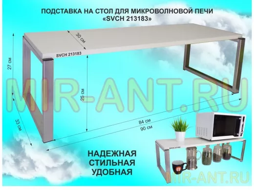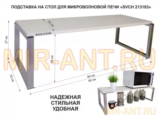 Подставка на стол для микроволновой печи, высота 27см, сереб "SVCH 213183" полка 90х30см, сосна - MIR-ANT.RU