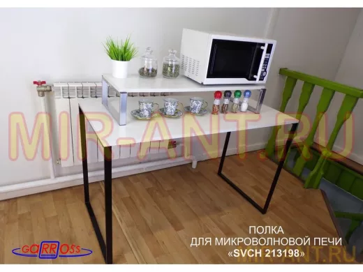 Подставка на стол для микроволновой печи, высота 17см, серебристый "SVCH 213198" полка 90х30см,сосна - MIR-ANT.RU