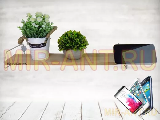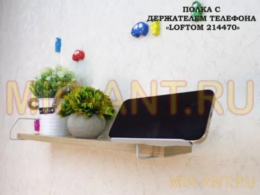 Полка с держателем телефона, серый "LOFTOM 214470" полка 54х10 см, дуб сонома - MIR-ANT.RU