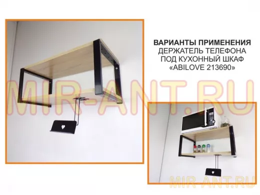 Стальной прочный держатель телефона 13,5х6 см под кухонный шкаф "ABILOVE 213690" цвет черный - MIR-ANT.RU