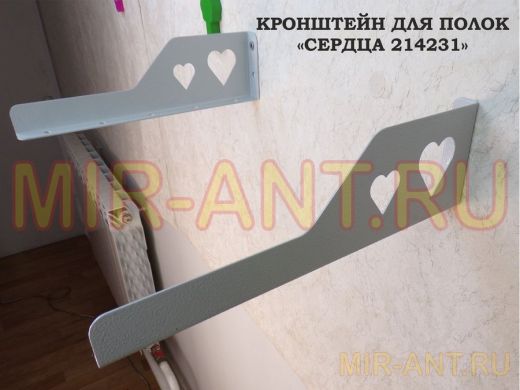 Кронштейн "СЕРДЦА 214231" для полок, правый 30x8 см , 7 отверстий 7 мм, серый - Мир антенн