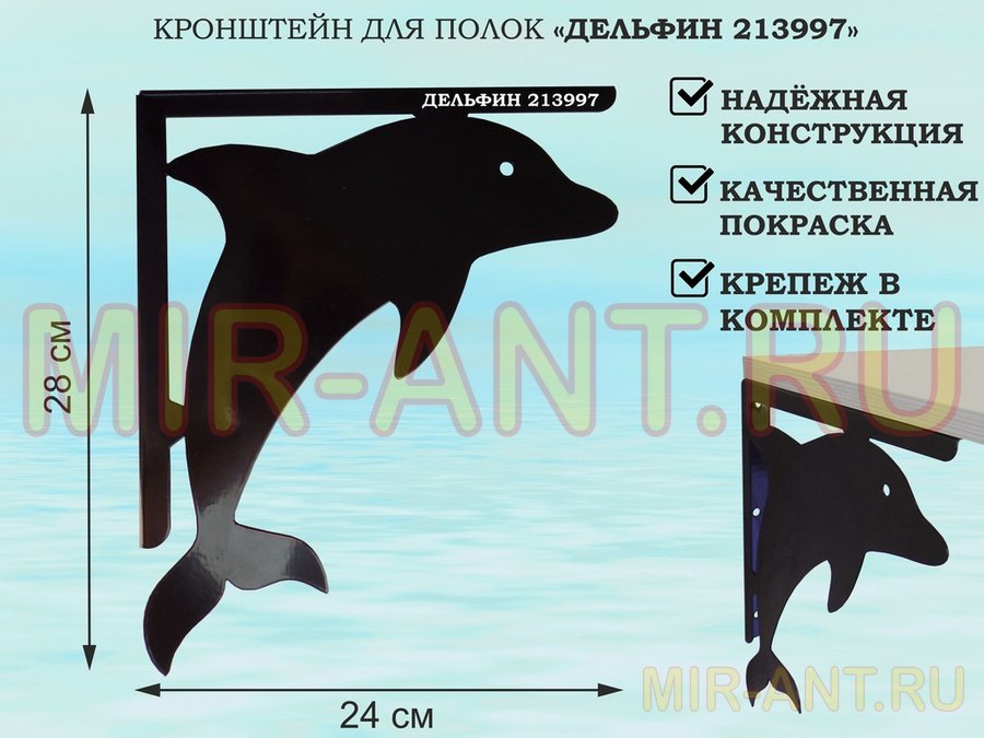 . Для полок. Кронштейны "ДЕЛЬФИН, БАДМИНТОН,ТИРЭКС,БРОНТОЗАВР и др" 24х21,5