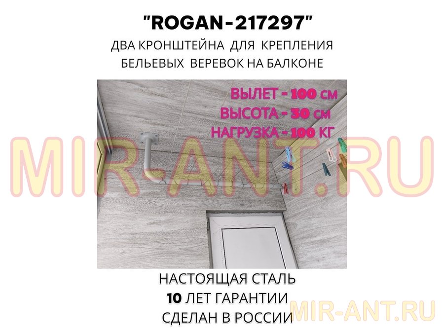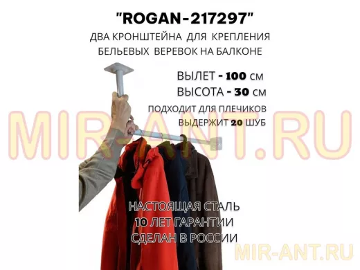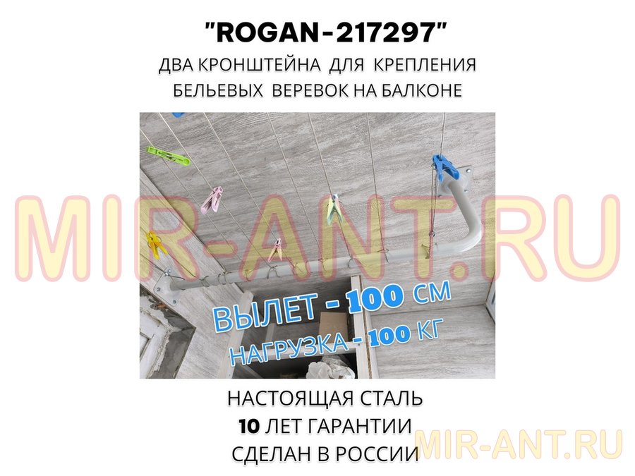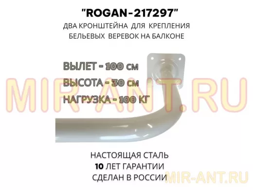 Сушилка для белья под веревки, 2 кронштейна, длина 100см, вылет 30см "ROGAN-217297" серый, 32мм - MIR-ANT.RU