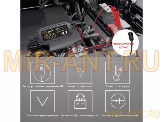 • Ёмкость заряжающей батареи от 6 до 200 А/ч