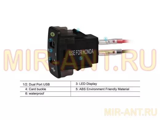 Врезное гнездо на 2*USB выхода 5В/2.1А макс на один USB