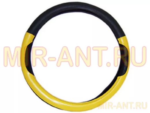 Оплетка на руль 38 см. M 7205 кожа черная+желтая кожа "спорт" "гладкая" - MIR-ANT.RU
