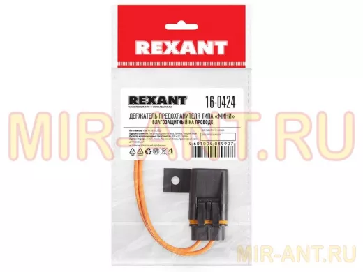 Держатель предохранителя типа "Мини" влагозащитный на проводе REXANT предназначен для фиксации флажкового предохранителя типа "Мини" и его защиты от внешних физических воздействий. Используют держатель для защиты электрической цепи и ее элементов от скачков напряжения, перегрева и возгорания. Специальное строение мембраны колпачка предотвращает попадание влаги. Корпус изготовлен из прочного пластика черного цвета. На колпачке предусмотрены соединительные элементы, которые позволяют объединять несколько держателей в отдельный блок. Держатель предохранителя REXANT незаменимый элемент автомобильной электросети, который продлит жизнь подключаемого оборудования.