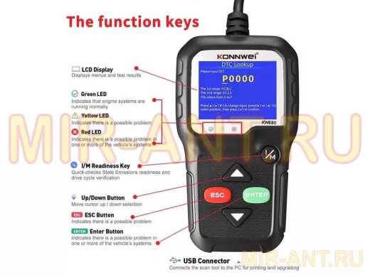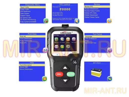 Автосканер OBD KONNWEI KW-680 (OBD2,CAN) - MIR-ANT.RU