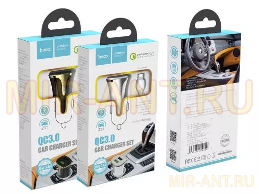 ЗУ в прикуриватель HOCO Z31 Белый iOS Lightning (QC3.0,5V)