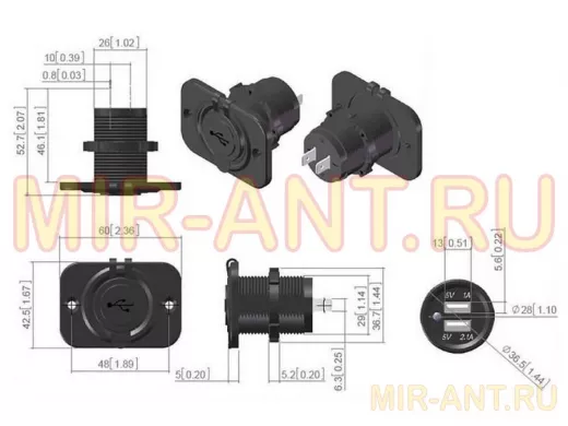 Автомобильный 2*USB порт с пылезащитой - MIR-ANT.RU