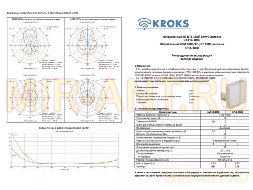 Направленная панельная антенна КР14-1800 с коэффициентом усиления 14 дБ рекомендуется для использования с 4G модемами, GSM 1800 усилителями сотовой связи (репитерами) и другим оборудованием, работающим в частотном диапазоне 1700-1900 МГц (системы радиосвязи, GSM сигнализации и т.п.).