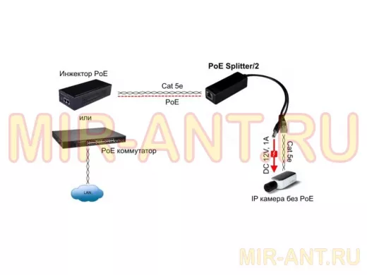 Разветвитель для подключения IP-камер, не оборудованных POE. Адаптер позволяет снабжать питанием LAN устройства с помощью кабеля передачи данных.