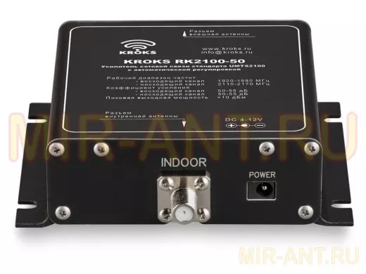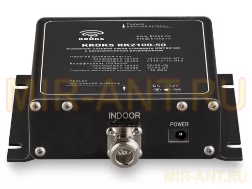 KROKS RK2100-50 — это маломощный репитер 3G-сигнала с коэффициентом усиления 50 дБ и максимальной выходной мощностью 10 дБм (10 мВт).