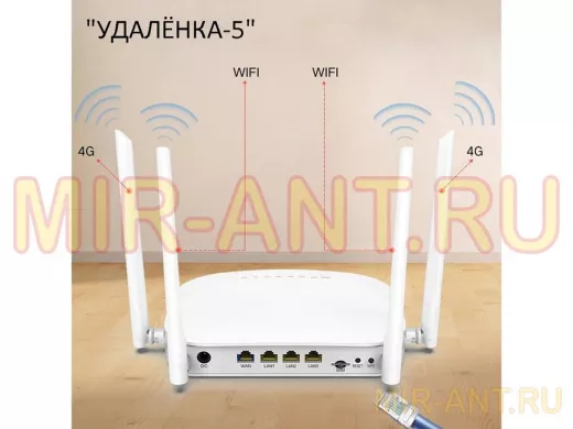"УДАЛЁНКА-5" Wi-Fi роутер с СИМ картой 4G (1хWAN, 3хLAN) с блоком питания, 2 антенны 4G, 2 ант.Wi-Fi