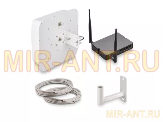 Комплект представляет собой готовое решение для организации беспроводного подключения к сети Интернет через мобильного 3G/4G оператора в зонах неуверенного приема сигнала или где обычный проводной интернет недоступен (загородные дома, дачи).