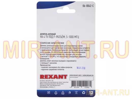 Делитель антенный F-типа на 4 TV, 5-1000 МГц REXANT