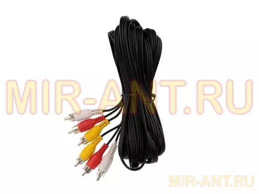 Шнур 3х3 RCA 5М REXANT предназначен для одновременной передачи аналогового видео и аудиосигнала (STEREO) и широко применяется для теле и аудиосистем. С обеих сторон шнура располагаются по три штекера разъема RCA (традиционный стандарт для аналоговой видео и аудиотехники). Шнур используется для совместной эксплуатации домашней и профессиональной аудиоаппаратуры (электронные музыкальные инструменты, усилители звука, телевизоры, видеомагнитофоны, ресиверы, спутниковые ресиверы и т.д.), с разъемами такого типа. Разъемы выполнены из лёгкого и прочного пластика, а контакты никелированы. Длина шнура составляет 5 метров.