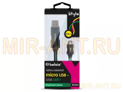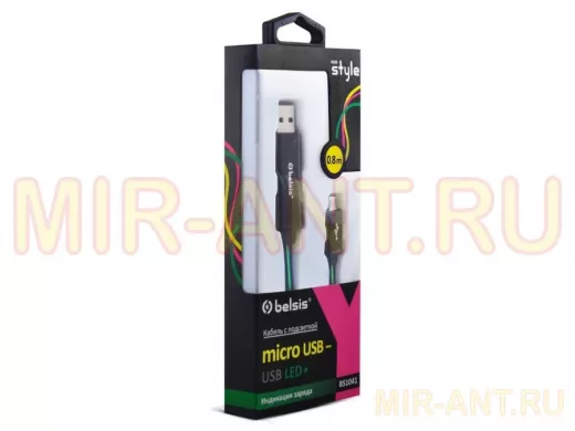 Кабель микро USB (AM/microBM) 0.8 м BS1041 с диодной индикацией - MIR-ANT.RU