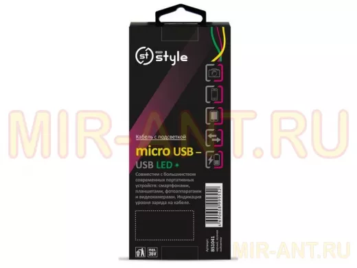 Кабель MicroUSB-USB. По длине имеет светодиодную подсветку зеленого цвета, которая отмечает процесс зарядки. Совместим со многими портативными устройствами: фотоаппаратами, планшетами, видеокамерами.
