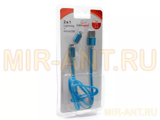 Кабель USB 2.0 Cablexpert CC-mAPUSB2bl1m, AM/microBM 5P - iPhone lightning, 1м, комбо кабель