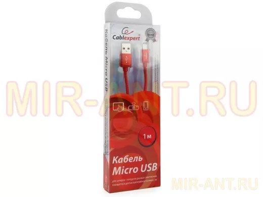 Кабель микро USB (AM/microBM) 1.0 м Cablexpert CC-S-mUSB01R-1M, USB 2.0, серия Silver, красный - MIR-ANT.RU