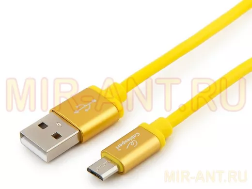 Кабель микро USB (AM/microBM) 1.0 м Cablexpert CC-S-mUSB01Y-1M, USB 2.0,серия Silver,желтый - MIR-ANT.RU