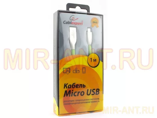 Кабель микро USB (AM/microBM) 1.0 м Cablexpert CC-G-mUSB01Gn-1M,USB 2.0, серия Gold, зеленый - MIR-ANT.RU