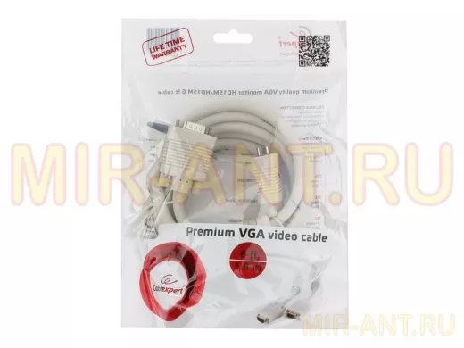 Шнур VGA штекер / VGA штекер длина 1,8 метра Premium Cablexpert CC-PPVGA-6, тройной экран,ферриты - MIR-ANT.RU