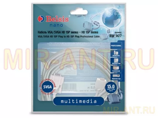 Кабель VGA/SVGA вилка - VGA/SVGA вилка , длина 15 м. BW1477