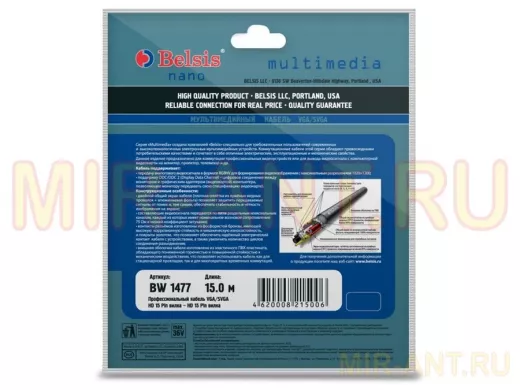 Кабель VGA/SVGA вилка - VGA/SVGA вилка , длина 15 м. BW1477 - MIR-ANT.RU