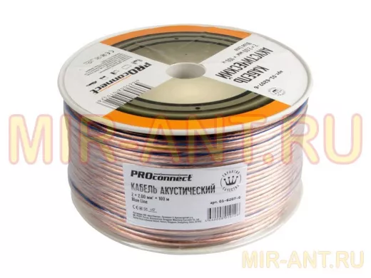 Кабель акустический 2х2,00 мм² Blue Line PROCONNECT состоит из двух параллельных многожильных проводников в изоляции из прозрачного поливинилхлоридного пластиката. Разделительное основание позволяет обеспечить разделение проводников кабеля без повреждения изоляции и оголения жил.