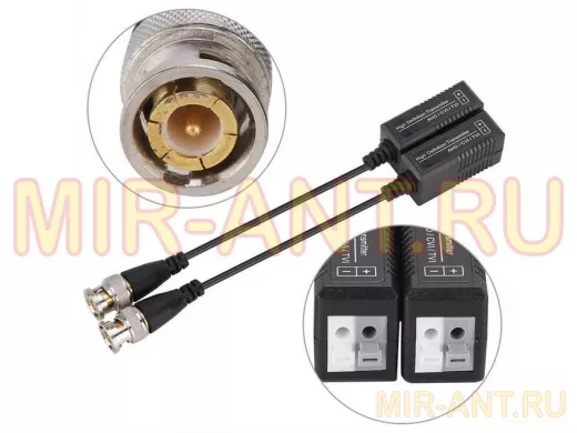 В корзину Купить в 1 клик Пассивный приёмопередатчик "ABBIKUS-21995" по витой паре для видеокамер AHD(Push зажим) 2хBNC штекер