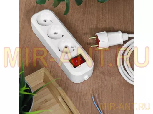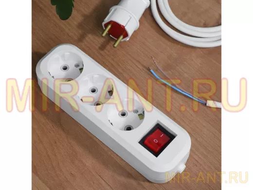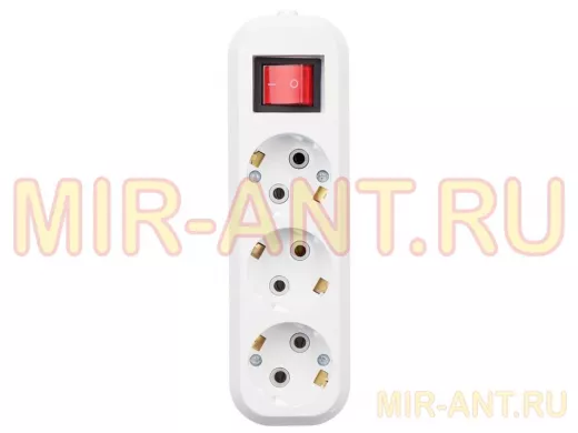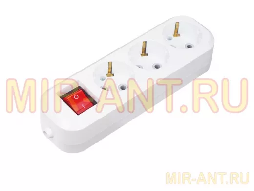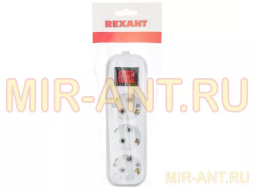 Колодка удлинителя 3 гнезда с кнопкой c заземлением REXANT - MIR-ANT.RU