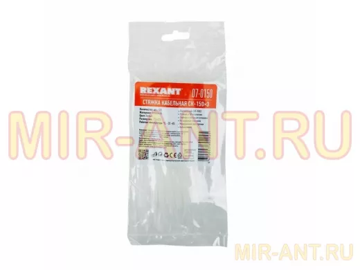 Хомут нейлоновый (кабельная стяжка) 150 х 2,5 мм, белый, REXANT предназначен для крепления или обвязки в жгут кабелей и проводов, крепления гибких гофротруб, а также других предметов к несущей поверхности или для соединения между собой. Такая стяжка используется при проведении электромонтажных работ, при монтаже структурированных кабельных систем, для бытовых нужд, а также в других отраслях народного хозяйства.