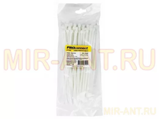 Хомут нейлоновый (кабельная стяжка) PROconnect предназначен для крепления или обвязки в жгут кабелей и проводов, крепления гибких гофротруб, а также других предметов к несущей поверхности или для соединения между собой. Такая стяжка используется при проведении электромонтажных работ, при монтаже структурированных кабельных систем, для бытовых нужд, а также в других отраслях народного хозяйства.